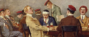 Georg Mühlberg: Verbindungsstudenten beim Singen auf einer Kneipe (um 1900)